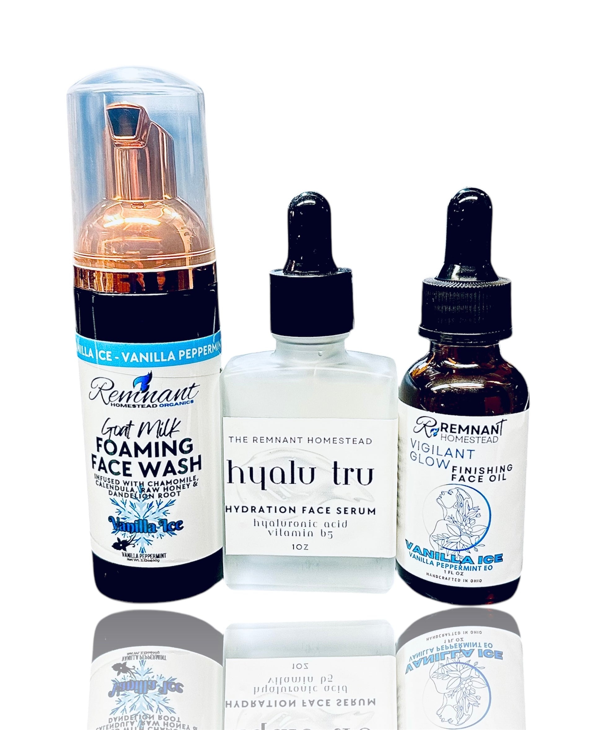 3 Step Bundle Includes The Following: -Step 1. Foaming Face Wash -Step 2. Hyalu Serum (In Blu or Ultimate) -Step 3. Face Oil